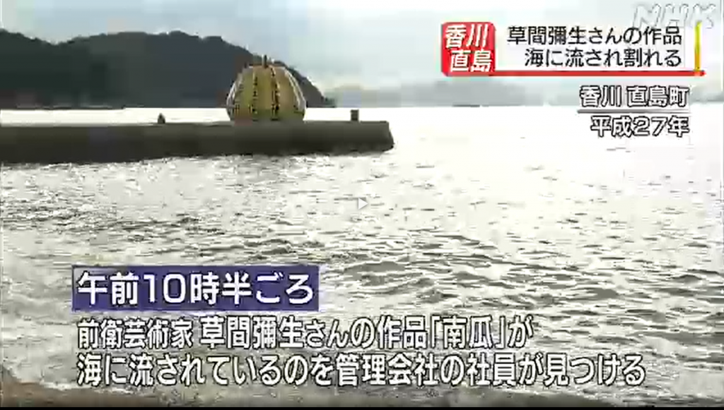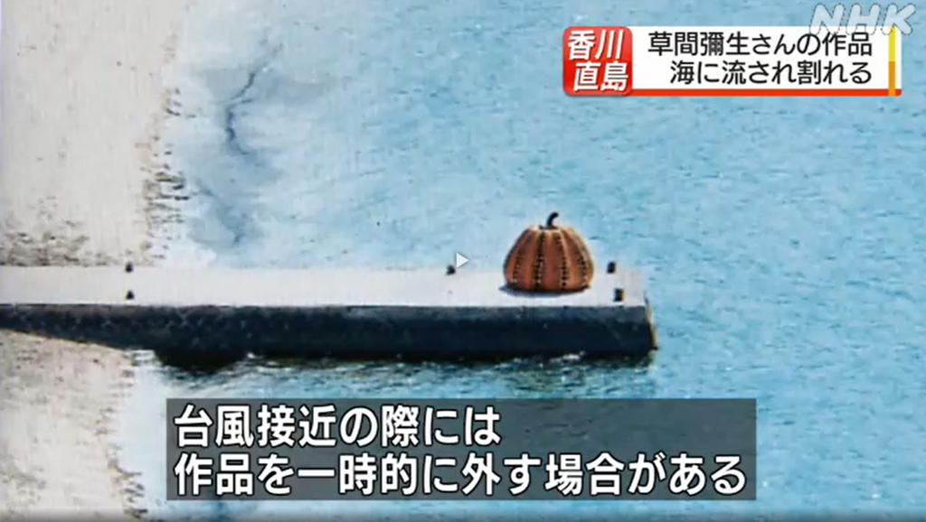 「現代アートの島」として知られる香川県直島町で9日、海沿いの屋外に設置していた芸術家の草間彌生さんが手がけたかぼちゃをモチーフにしたアート作品が海に流され、破損しました。