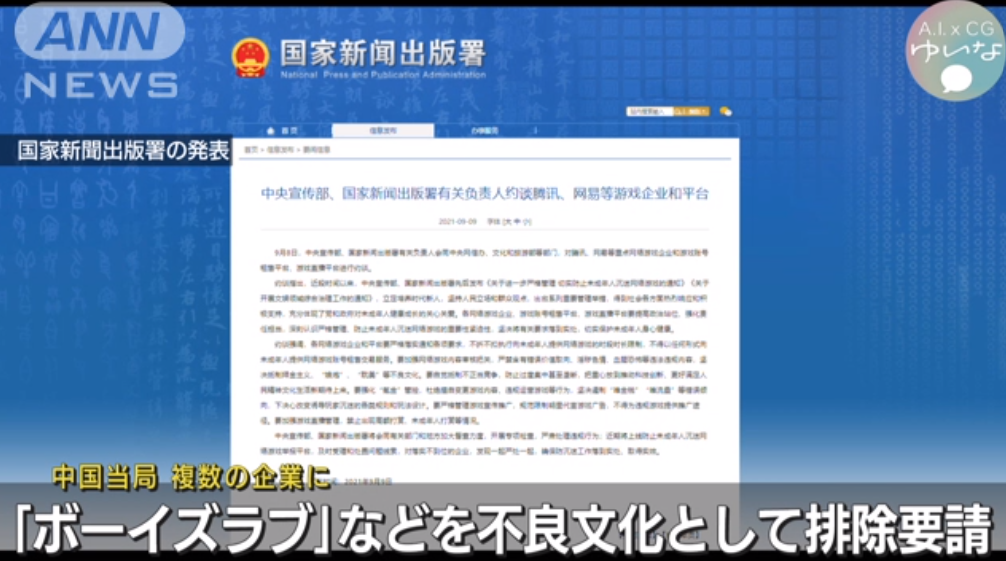 中国当局はオンラインゲームの運営会社に対して「ボーイズラブ」などを「不良文化」と名指しし、断固排除するよう求めました。