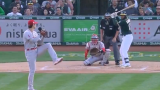 ここで6番・ポリドリに対し、インコースのストレートを投じると、これをポリドリはフルスイング。バットの根っこに当たると、打球は上野に対しての力ないライナーに。バットは根元からポッキリと折れ、飛び出した走者もアウトになり、併殺となった。