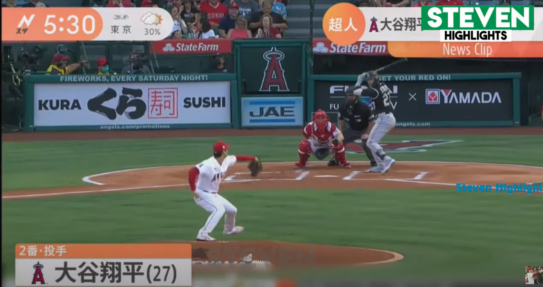 打っては0-0で迎えた初回の第1打席は1死一塁で打席に立つと、先発右腕マルケスの暴投で走者が二塁となり、カウント3-1からのシンカーを捉えて中前へと運ぶ先制適時打を放った。なおも1死一塁のウォルシュの打席では今季14個目となる盗塁。するとウォルシュは右前適時打を放ち、大谷は貴重な2点目のホームを踏んだ。3回先頭の第2打席は空振り三振。5回2死の第3打席はニゴロだった。7回2死、2番手左腕・ボーデンと対戦した第4打席は空振り三振だった。